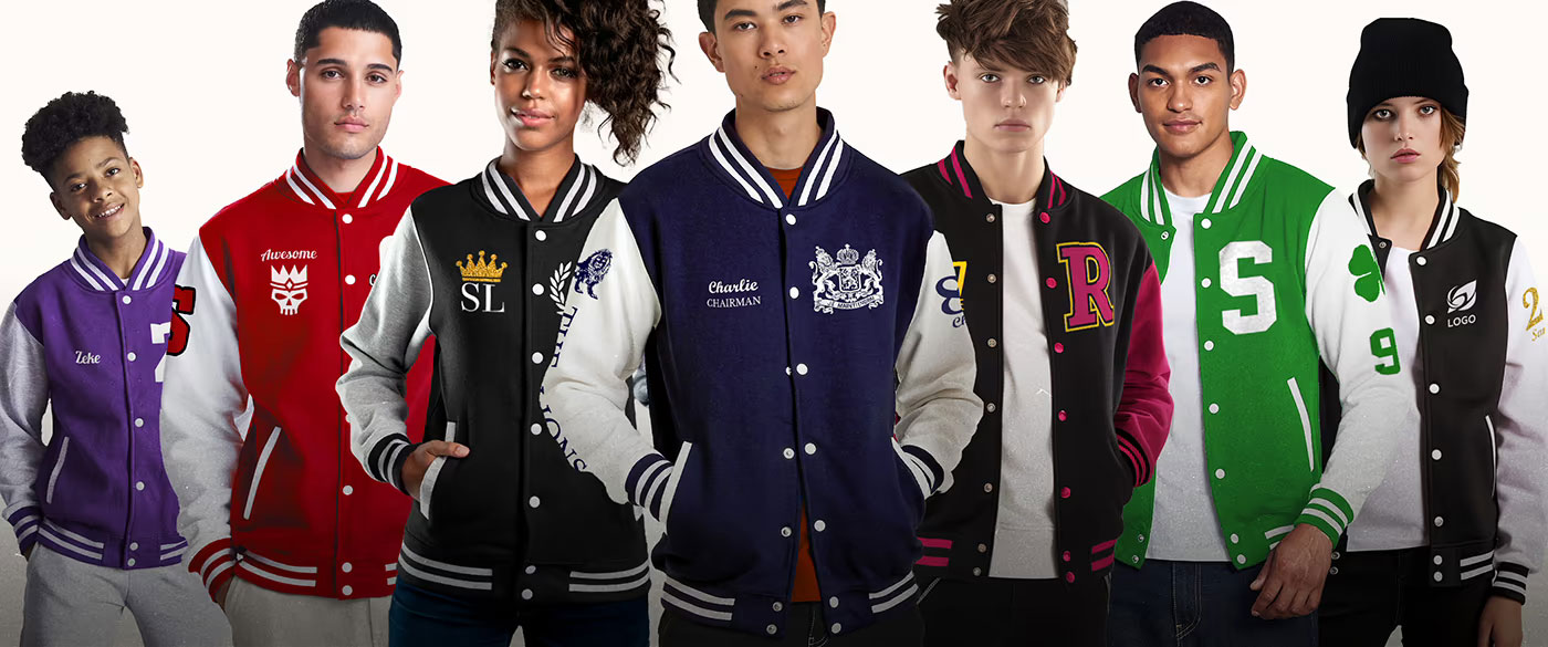 Easily create your perfect Varsity Jacket. Choose colours, text, logos and letters and make your idea a reality.
